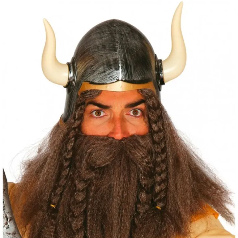 ¡Conviértete en un verdadero Bárbaro o guerrero de la edad media! Casco con cuernos con efectos plateados y dorados. NO incluye barba.