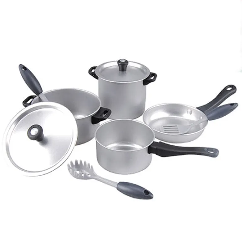 Nuevo y espectacular set de metal de 9 piezas para jugar a las cocinas y comiditas. ¡Con este completo set de cocina podrás disfrutar de deliciosos platos! Incluye todos los accesorios esenciales para cocinar.