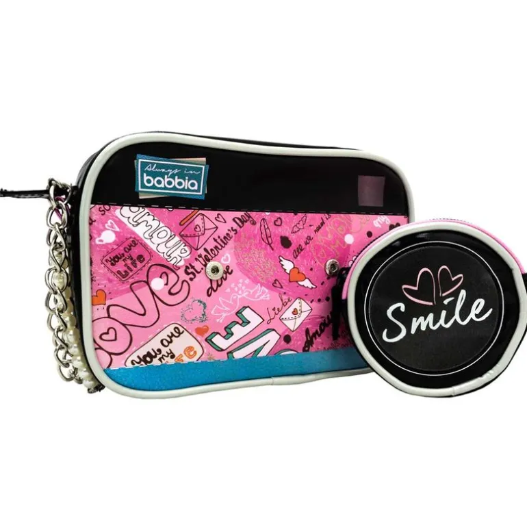 Moderno y original bolso de la colección Always in Babbia ¡Para marcar un estilo único y no pasar desapercibida! Es un bolso para poder llevar cruzado, con diseño de cámara de fotos al que podrás despegar el objetivo… ¡Y convertirlo en un monedero! Para que puedas llevar tus objetos personales y dinero siempre contigo. Sus dimensiones son de 23.6 cm x 21.4 cm x 5.6 cm aproximadamente.