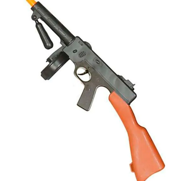 Ametralladora para que puedas completar tu disfraz de gangster. Su tamaño es de 52 cm aproximadamente. NO dispara.