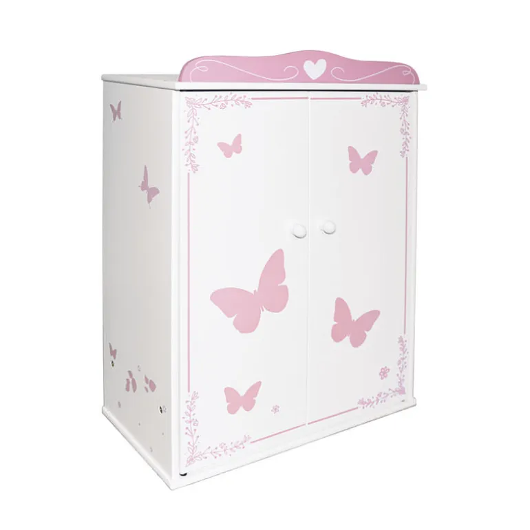 Nuevo armario de madera para muñecas en color blanco, con bonitos detalles en rosa.