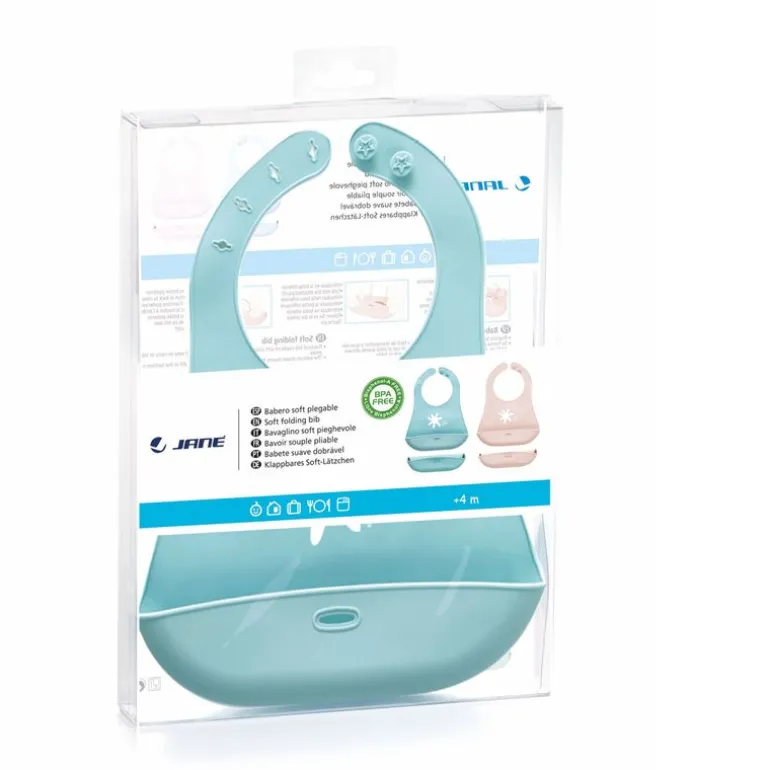 Babero de silicona enrollable con forma de pelícano, dispone de un bolsillo para que la comida no caiga en las piernas del niño, se queda almacenada en este bolsillo evitando que el niño se manche. Muy fácil de poner gracias a su cierre de clip regulable