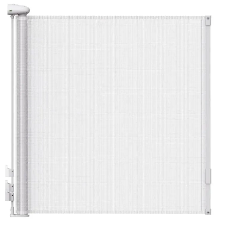 Esta barrera ocupa muy poco espacio cuando no se utiliza ya que se pliega. Fácil de abrir y cerrar con una sola mano. Fácil de instalar (en espacios de hasta 140 cm.) con sólo coger el soporte a la pared con taladros. Puede montarse de pared a pared, o de pared a barandilla con los accesorios incluidos.