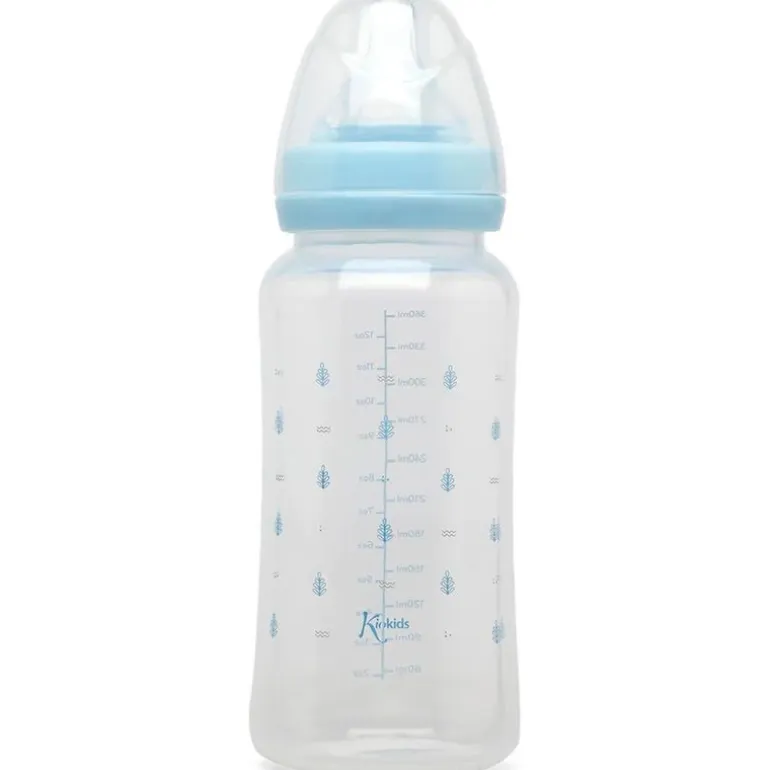 Biberón con capacidad de 360 ml. Dispone de un cuello ancho y una tetina de silicona con 3 posiciones: girando el biberón, regulas la intensidad de salida del líquido, siendo el 1 de flujo más lento y el 3 el más adecuado para líquidos más densos. Tiene sistema para ayudar a evitar cólicos y libre de BPA. Recomendado a partir de 6 meses.