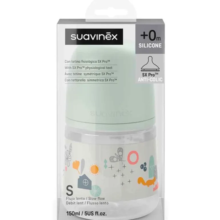 Biberón de 150ml con tetina fisiológica SX Pro de Silicona de Flujo lento y con válvula anti cólico. Para +0m