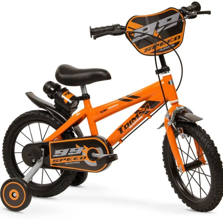 icicleta infantil de 14 pulgadas. Dispone de asientos que se pueden regular en altura, frenos delanteros y traseros de tipo herradura, ruedines para facilitar el aprendizaje de l@s más pequeñ@s, cubrecadera y guardabarros. Sus ruedas están fabricadas en caucho. Incluye botella decorada con porta botellas trasero. PIÑÓN FIJO. *LAS PEGATINAS PUEDEN VARIAR DE LAS DE LA IMAGEN* ADVERTENCIA: De acuerdo con La Ley de Tráfico y Seguridad Vial, en vigor desde el 9 de mayo de 2014, los niños menores de 16 años están obligados a llevar casco cuando circulen en bicicleta, tanto en vías urbanas como interurbanas