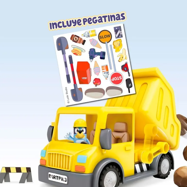 Camión volquete inspirado en la serie de animación Bluey.