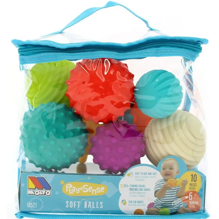 Bolsa que contiene 10 bolas sensoriales, ideal para bebés, con las que lo pasarán genial. Vienen en colores llamativos, diferentes texturas y formas, que llamarán la atención de l@s más pequeñ@s y desarrollará su curiosidad. Estas bolas están fabricadas en un material blandito, lo que las hace sencillas de agarrar y suaves, perfectas para las manos más pequeñas. Recomendado a partir de 6 meses.