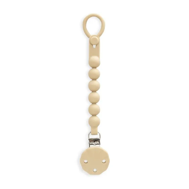 Cadena porta chupete de silicona que se adapta a los chupetes con anilla, y pinza para sujetar en la ropa.