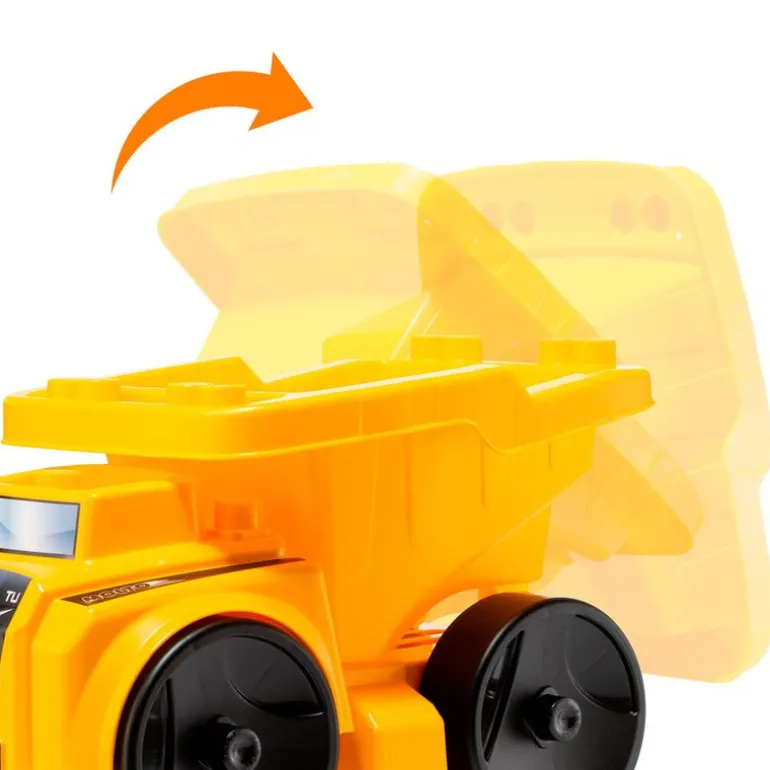 El volquete se inclina para descargar fácilmente los bloques después de jugar.