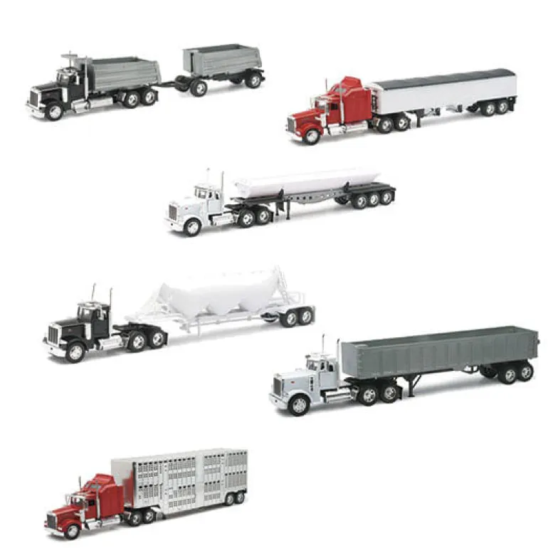 Replicas de camiones americano con un gran nivel de detalles a escala 1:32. Las carrocerias de estos camiones son de metal y sus decoraciones en plástico con mucho realismo harán las delicias de los amantes de los vehículos de grandes dimensiones.