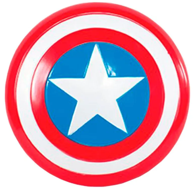 Escudo en su edición clásica como la de los cómics de Marvel, es el complemento esencial para tu disfraz de Capitán América. Mide 30 cm de diámetro.