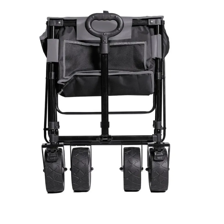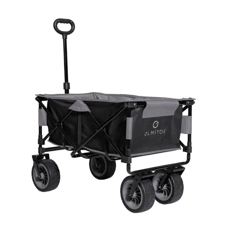 Carro de transporte, plegable para la playa, el camping o ir al supermercado. Su estructura de acero muy resistente, con 4 grandes ruedas con freno en las delanteras, hace que sea ideal para utilizarlo tanto en la playa como en los terrenos más irregulares.