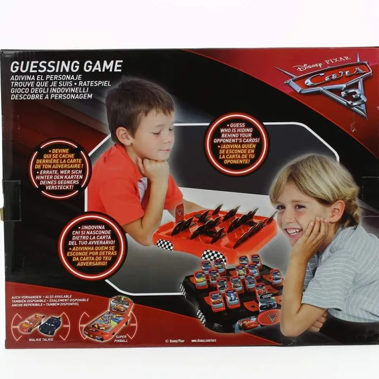El clásico juego de mesa en el que debes averiguar el personaje que esconde tu rival llega ahora con los personajes de Cars 3. Durante el juego tendrás que ir haciendo preguntas a tu rival en las que la respuesta sólo pueda ser sí o no; de este modo irás descartando personajes hasta llegar al que esconde tu contrincante. En las fichas de juego encontrarás todos los personajes de la película. Edad recomendada a partir de 3 años. Para 2 jugadores.