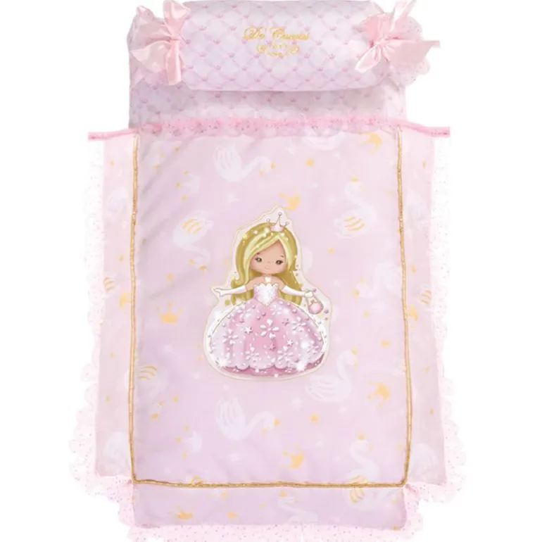 Incluye también una mantita y una almohada a juego para tu muñeca bebé.