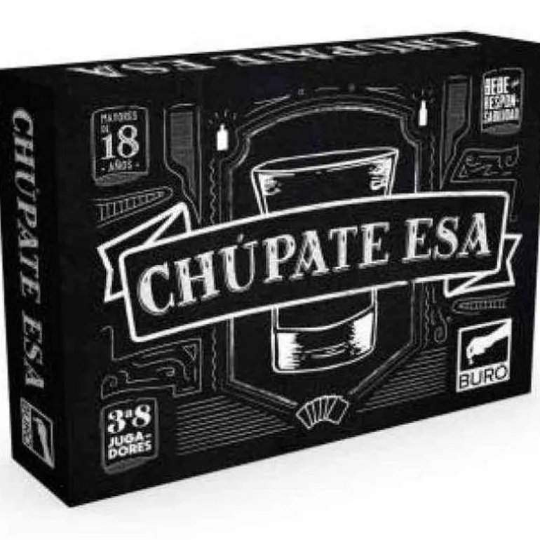 Chúpate esa es un juego de cartas en el que tu principal objetivo será pasar el problema a los demás participantes, es decir, no beber. Si bebes tres veces, quedarás eliminado, y el último en ser eliminado será el vencedor. De 2 a 8 jugadores. Recomendado a partir de 18 años.