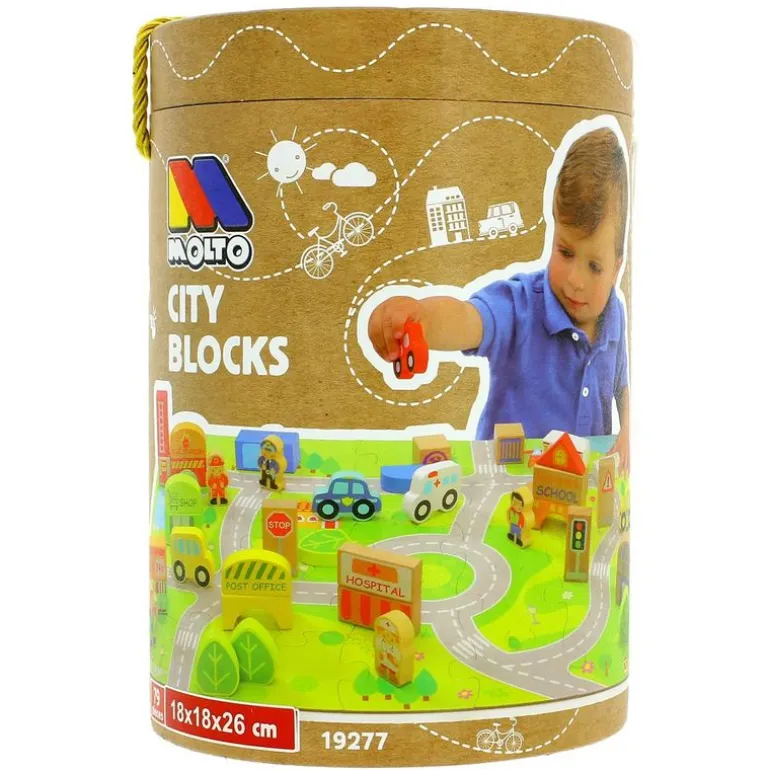 Colorido set de la colección Molto, en el que encontrarás 79 piezas con las que construir una divertida ciudad.
