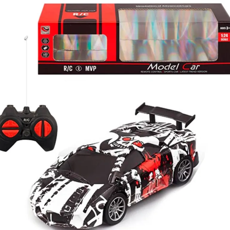 Coche radiocontrol de escala 1:24 que dispone de mando para moverlo en diferentes direcciones.