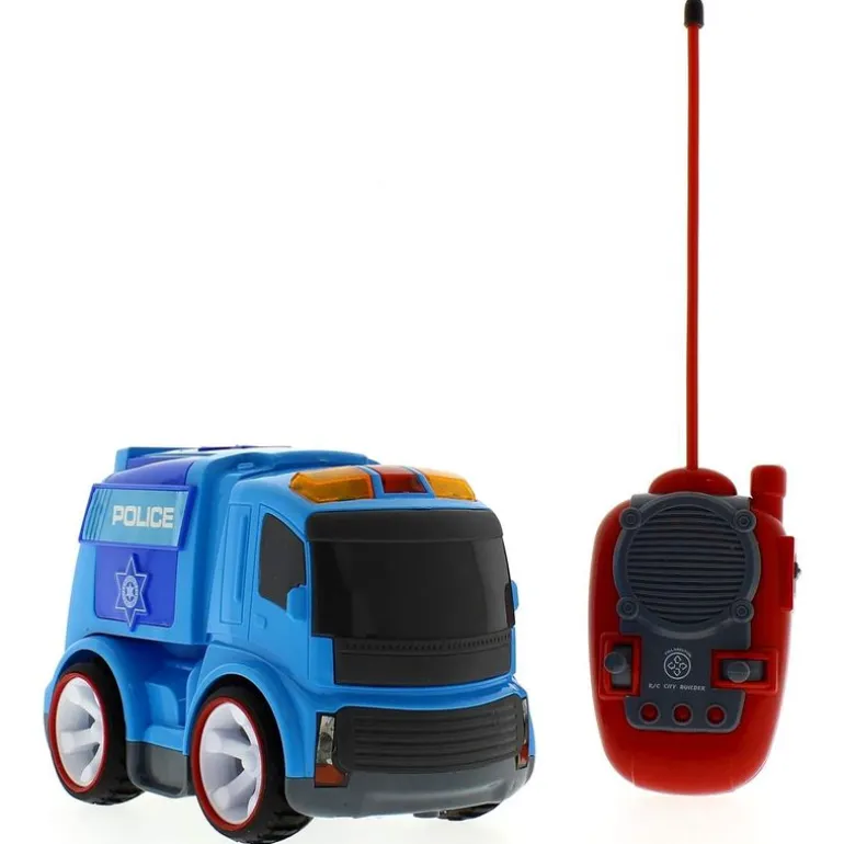 Coche teledirigido infantil de policia con mando radio control inluido. Contiene además una tecnología digital proporcional para un control de la alta precisión en la velocidad y Dispone de control direccional completo: adelante, hacia atrás, izquierda y derecha. Las palancas del mando radio control emiten sonidos
