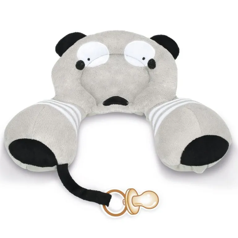 Divertido cojín cervical en forma de animalitos que ayuda al niño a mantener la cabeza en una posición cómoda mientras duerme en su silla de seguridad. Contiene un práctico sujetachupete con velcro.