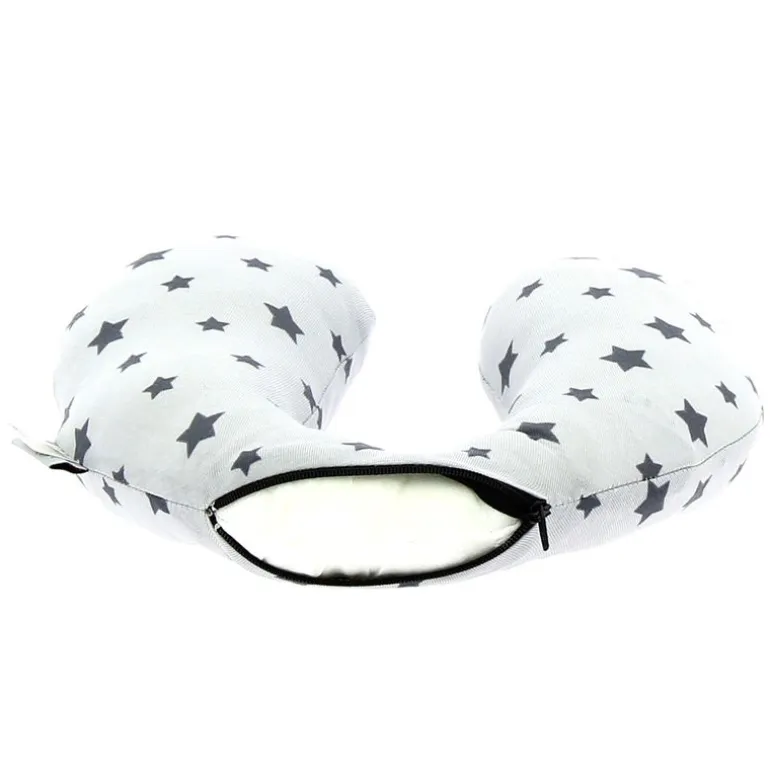 Cojín cervical de viaje fabricado en suave tejido de punto de algodón. Diseñado para niños de 1 a 3 años. Ayuda a mantener la cabeza en una correcta posición si se duermen durante el trayecto. La parte de la nuca es más estrecha para conseguir una mejor posición de la cabeza.
