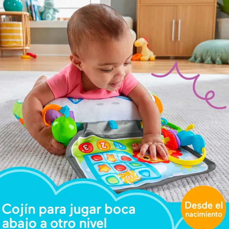 Prepara a tu pequeño para ser un jugador con el cojín pequeño gamer de la colección Fisher Price. Pasa al siguiente nivel con este cojín para jugar boca abajo, que cuenta con un divertido juguete que hacer clic-clac y un sonajero para estimular más aún los sentidos. Con la estupenda pantalla para arrugar, los auriculares que hacen ruido y el sonajero con forma de bebida energética, tu bebé tiene todo lo que necesita para una sesión de juego épica, ya sea boca abajo o sentado ¡Posibilidades infinitas! Recomendado a partir de 0 meses.
