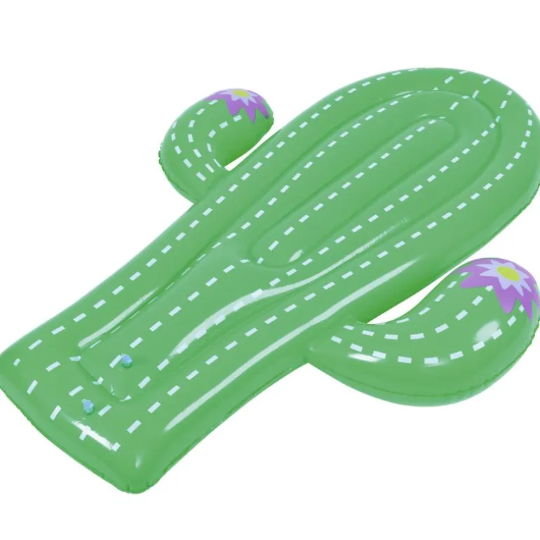 Llamativa colchoneta en forma de cactus, con unas dimensiones de 180 cm x 138 cm aproximadamente.