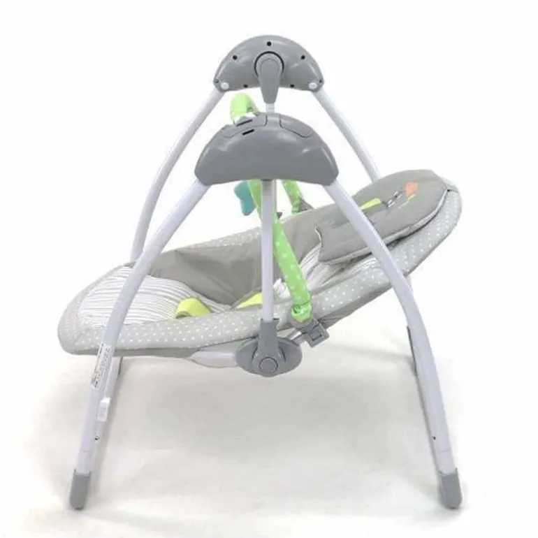 Columpio con 5 velocidades de suave balanceo automático que relaja y tranquiliza a tu bebé; cuenta con diferentes opciones de programación y con diferentes melodías y sonidos de la naturaleza (puedes ajustar el volumen según el momento).