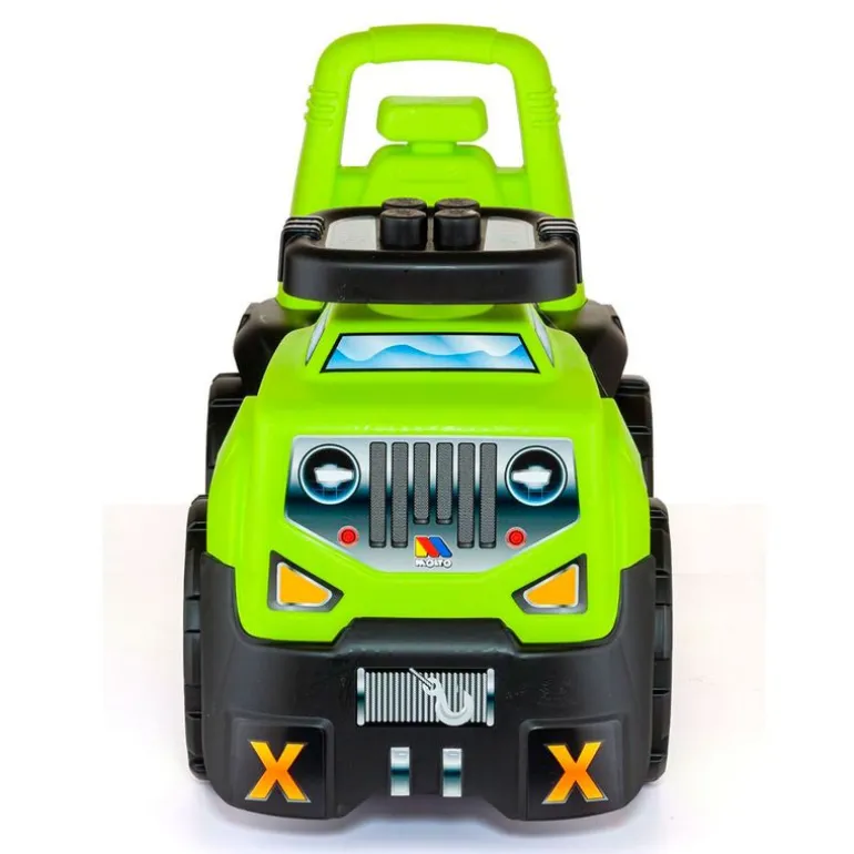 Correpasillos Suv 3 en 1 amarillo de la colección Molto. Tiene forma de todoterreno y los más pequeños de la casa lo podrán utilizar de 3 maneras diferentes. Como correpasillos para correr sin parar por casa o en la calle. Como andador, gracias a su soporte lumbar el cual sirve de apoyo para dar sus primeros pasitos y como juego de bloques, en el maletero descubrirás bloques de colores. Sus dimensiones son de 43.50 cm de alto x 57 cm de largo x 30 cm de ancho aproximadamente. Recomendado hasta los 36 meses.