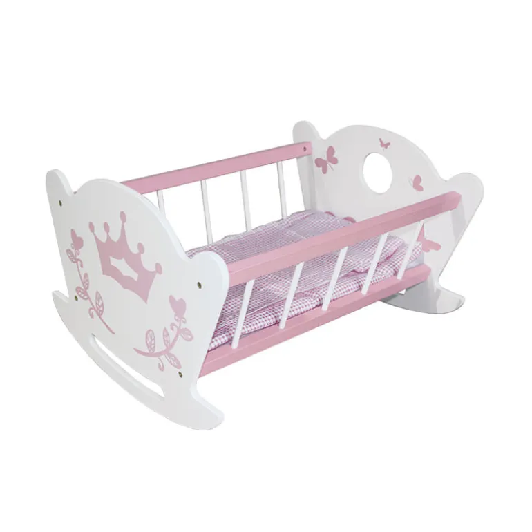 Cuna blanca de madera tipo balancín para dormir a tus bebés. Incluye la ropita de cuna que se ve en la foto. Medidas aproximadas del producto montado: 28 (altura) x 50 (anchura) x 40 (fondo) cm aproximadamente.