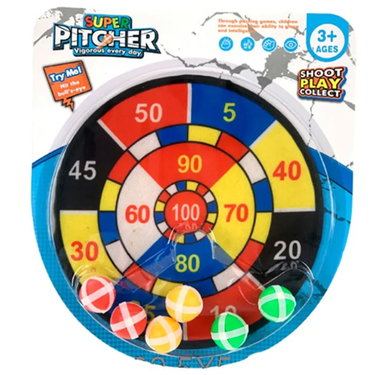 Diana para que los más pequeños de la casa practiquen su puntería. Está hecha de velcro y contiene 6 pelotas de velcro para lanzar. Recomendado a partir de 3 años.