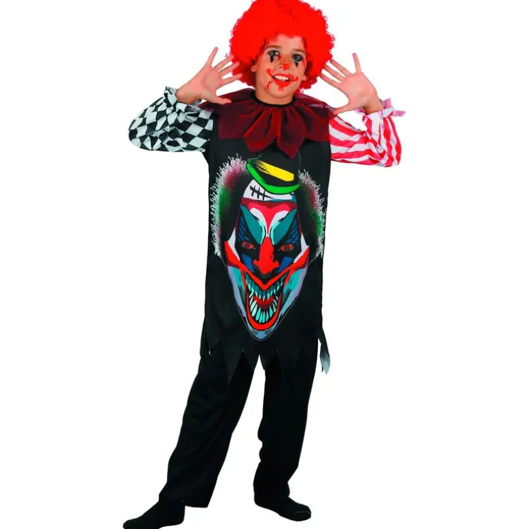 Disfraz de payaso malvado de niño compuesto por mono con un payaso diabolico y accesorio del cuello. NO incluye peluca y zapatos. Talla M (Altura 120-130cm, pecho 67cm, cintura 60cm, 6-8 años) orientación aproximada.