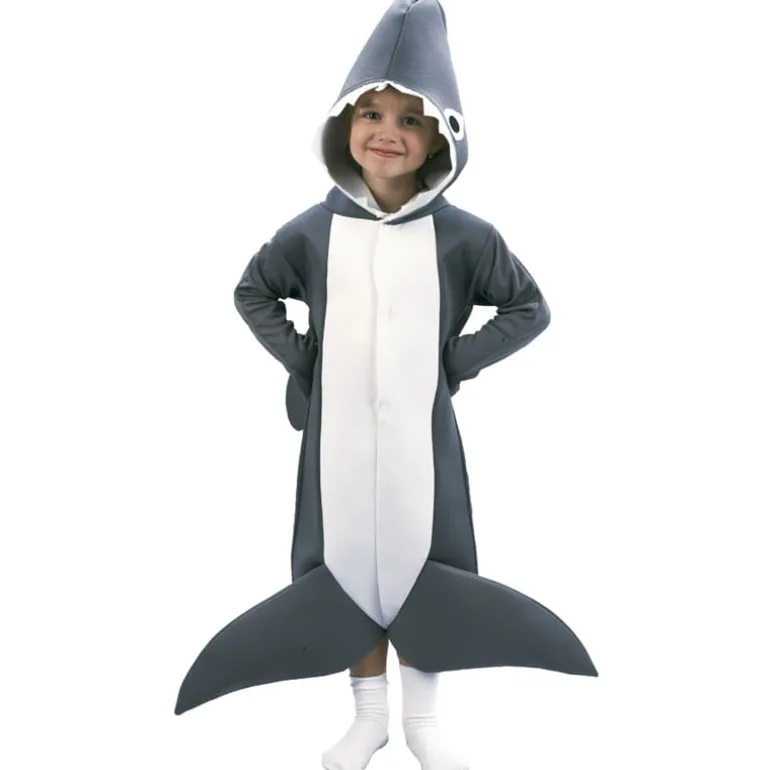 ¡Cuidado con el tiburón! Gracioso disfraz de traje de cuerpo entero con la capucha adjunta. NO incluye calcetines.