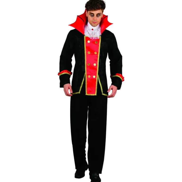 Disfraz de un aterrador vampiro. Se compone de una chaqueta y una corbata. NO incluye pantalones y calzado. Talla 52 (Altura 178cm, pecho 104cm, cintura 96cm, Talla L) orientación aproximada.
