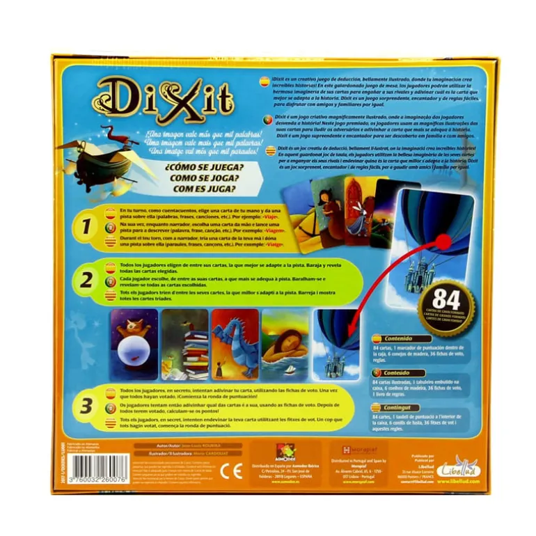 Dixit es un mágico juego en el que deberás utilizar tu imaginación, a través de bellas ilustraciones, y crear increíbles historias.