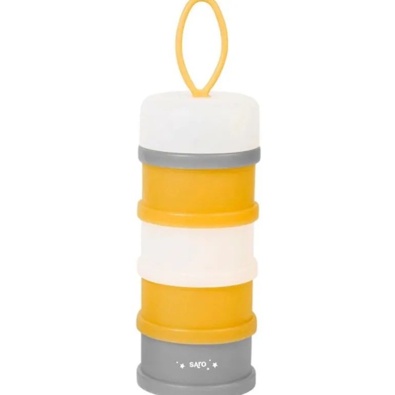 Contenedor para llevar las dosis extra de leche en polvo y cereales. Con cuatro cuerpos apilables.