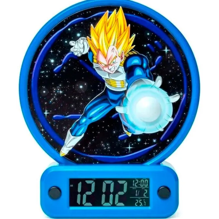 Reloj despertador con diseños inspirados en Vegeta, personaje de la serie de anime Dragon Ball.
