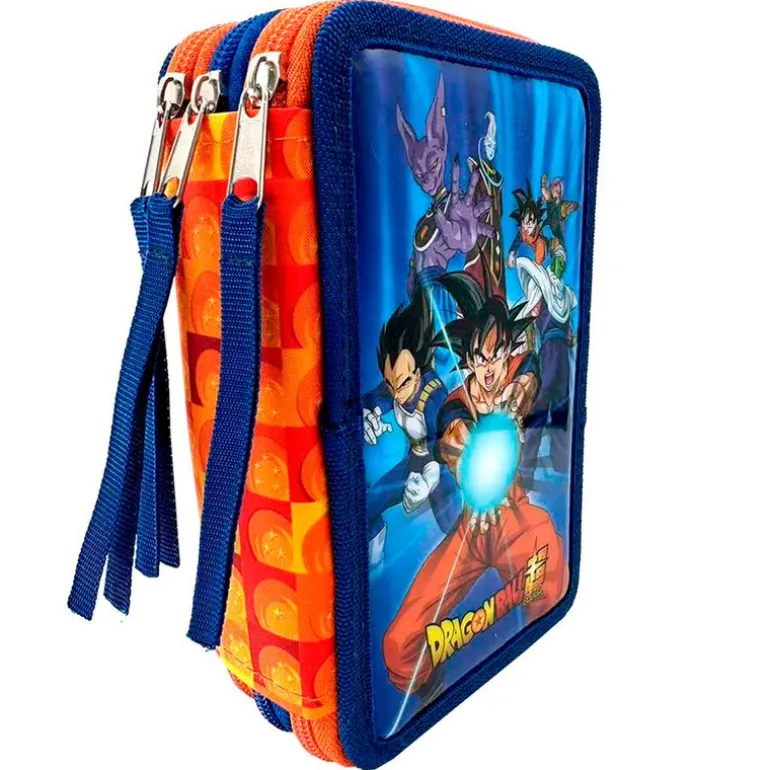 Estuche de 3 pisos con diseños inspirados en la serie de anime Dragon Ball.