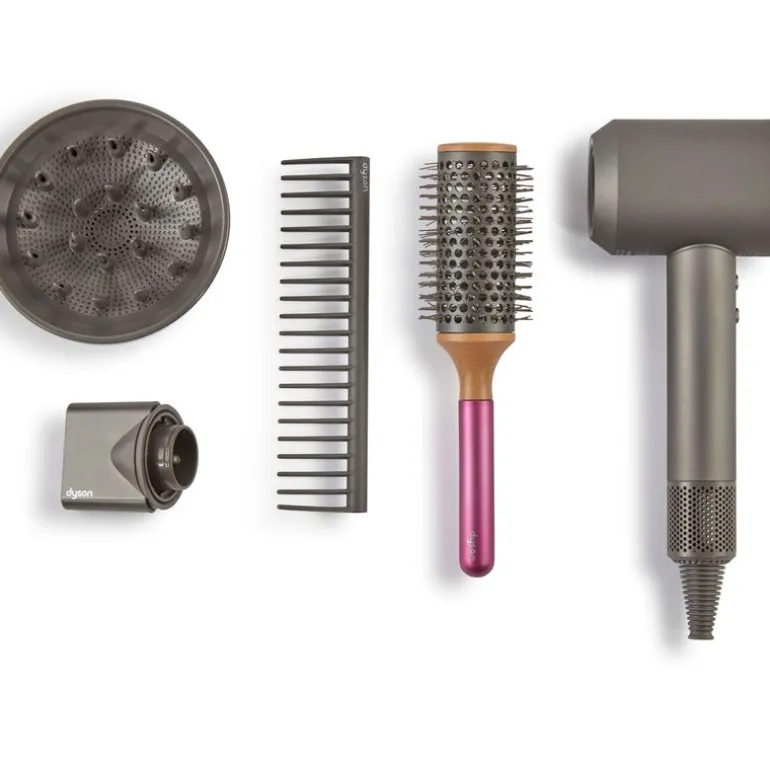 Pack con el que las más pequeñas de la casa podrás divertirse mientras crean sus propios peinados. En el interior encontrarás accesorios inspirados en la famosa marca Dyson. Conteine un secador Supersonic que expele aire y reproduce sonidos y luces como si fuera de verdad, un accesorio boquilla, accesorio difusor, cepillo de barril y peine desenredante. Funciona con 3 pilas AAA NO incluidas. Recomendado a partir de 3 años.