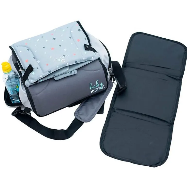 Asiento elevador con adorables diseños de estrellitas. Dispone de un arnés de seguridad ajustable que sujeta al bebé firmemente al asiento. Tiene prácticos bolsillos en los que podrás guardar todo lo que necesites para el cuidado de tu bebé. Incluye correas ajustables para acoplar al respaldo y al asiento de la silla. El asiento tiene una base rígida muy ligera para un apoyo más cómodo. La correa de seguridad permite instalar el asiento en la mayoría de sillas estándar. Es plegable, ligero y viene con asa regulable para transportarle. Abierto tiene unas dimensiones de 35 cm x 37 cm x 31 cm aproximadamente. Cerrado tiene unas dimensiones de 35 cm x 16 cm x 31 cm aproximadamente. Recomendado a partir de 12 meses.