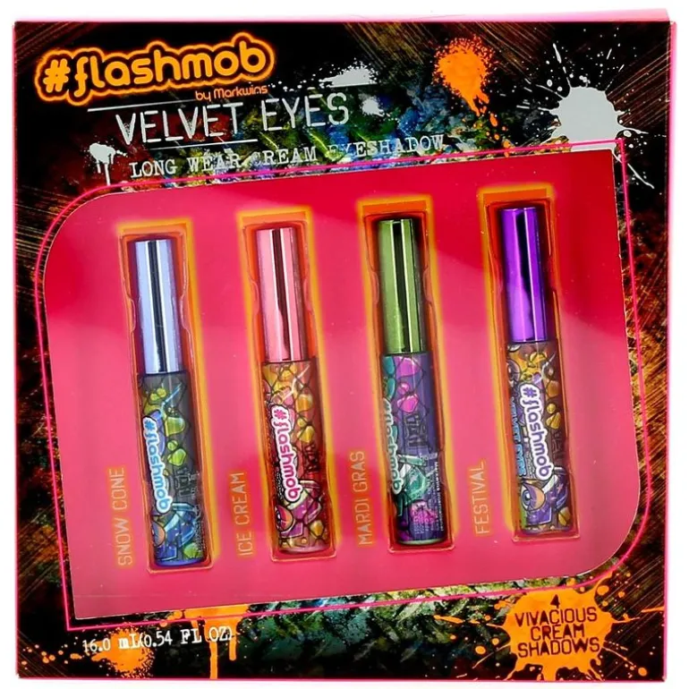 Consigue una mirada intensa y profunda con la colección de sombras de ojos ultra pigmentadas Velvet Eyes de Flashmob. El pack incluye 4 sombras de ojos -en crema- de larga duración, con una textura aterciopelada y fácil de aplicar. Peso Neto de las cuatro sombras ojos: 11,20 gramos/ml.