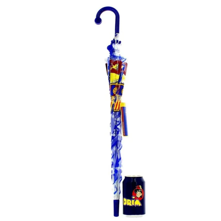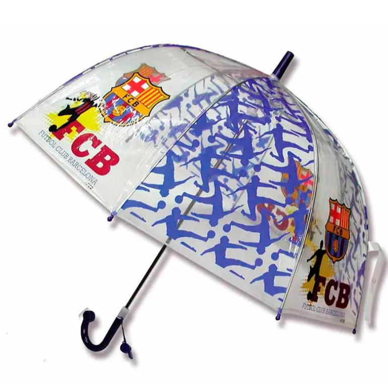 Paraguas transparente con el escudo del F.C. Barcelona de 42 cm de diámetro, aproximadamente. ¡¡Protégete de la lluvia con el paraguas de tu equipo!!