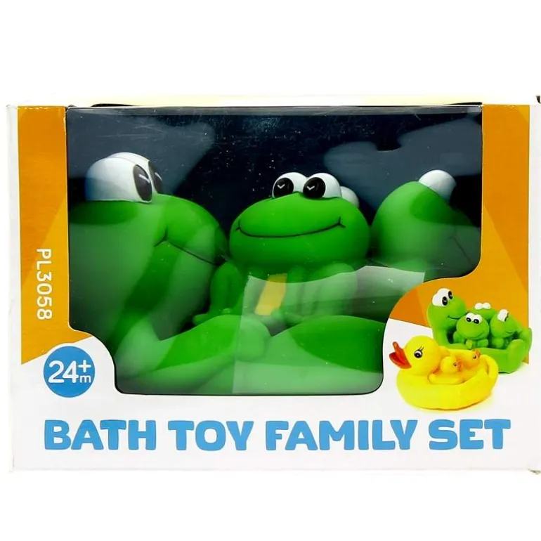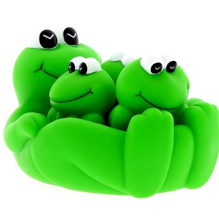 Familia de ranitas acuáticas para jugar en la bañera, y ahora que llega el verano, para jugar tambien en la playa o en la piscina. Mamá rana tiene forma de «barca» y dentro están las tres ranitas removibles. Fabricado en PVC.