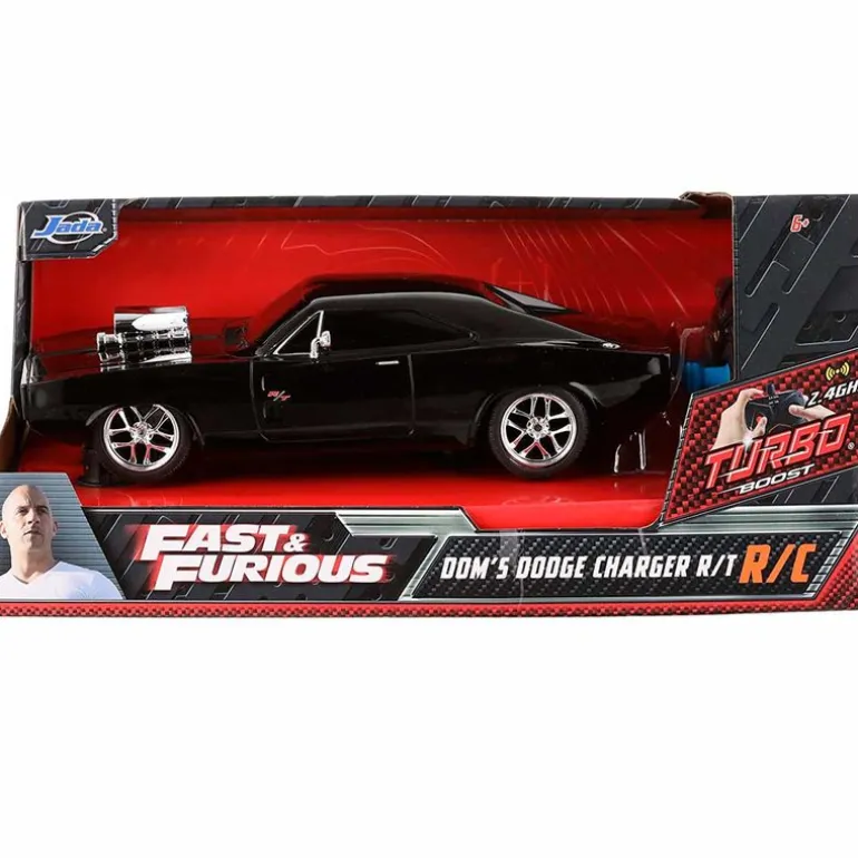Vehículo radiocontrol inspirado en el modelo Dodge Charger que conduce Dominic Toretto, personaje de la famosa saga Fast & Furious. Su escala es de 1:24. Viene acompañado de mando para que puedas moverlo a todas las direcciones. Funciona con pilas AAA y AA NO incluidas. Recomendado a partir de 6 años.