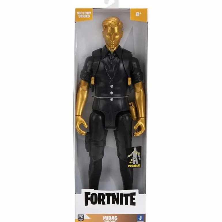 Figura articulada del personaje Midas, que pertenece al videojuego de supervivencia Fortnite. Tiene un tamaño de 30 cm aproximadamente ¡Recrea tus escenas favoritas del videojuego! Recomendado a partir de 8 años.