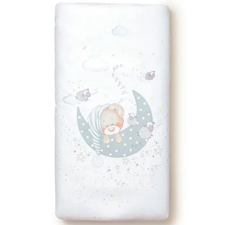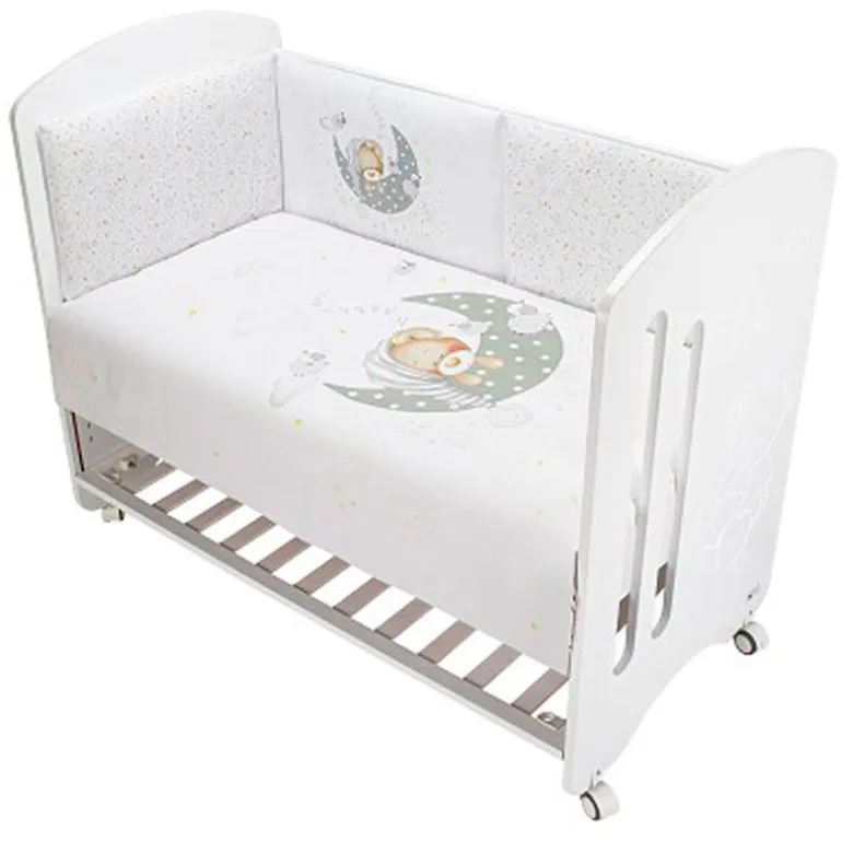 Conjunto de 2 piezas formado por funda nórdica desenfundable y protector chichonera con un precioso dibujo.