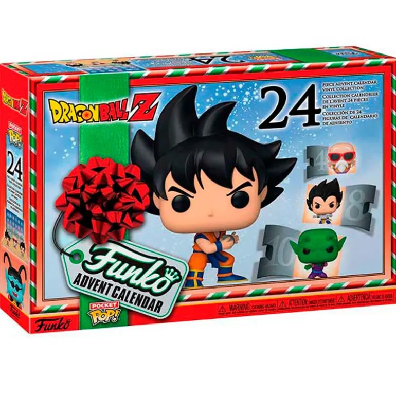 Calendario de adviento de la colección Funko POP inspirado en la famosa serie de anime, Dragon Ball. En el interior encontrarás 24 casillas, con las que podrás realizar la cuenta atrás hasta que llegue la navidad ¡Encontrarás un pequeño Funko POP en el interior de cada una de ellas!
