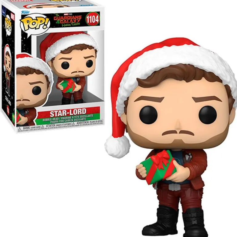 Figura fabricada en vinilo de la colección Funko POP! con número 1104, inspirado en el personaje de Star Lord, como aparece durante el especial de navidad de Guardianes de la Galaxia. Su tamaño es de 10 cm aproximadamente. Recomendado a partir de 3 años.