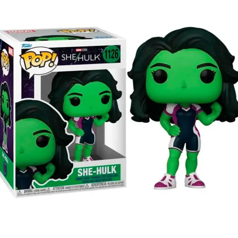 Figura fabricada en vinilo de la colección Funko POP con número 1126, inspirada en el personaje de She-Hulk del universo Marvel.