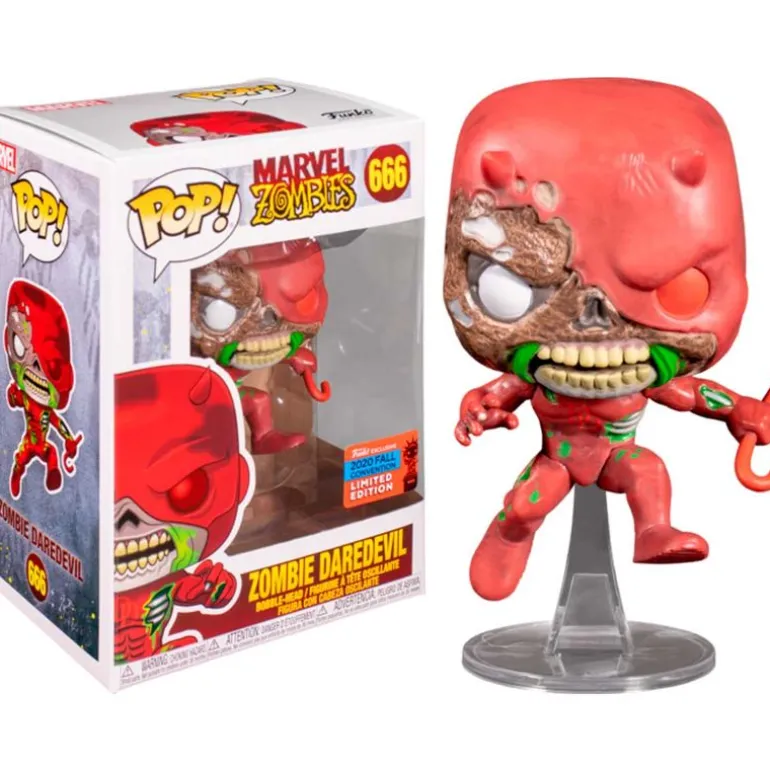 Figura fabricada en vinilo de la colección Funko POP con número 666, inspirado en Daredevil de la colección Marvel Zombies. Su tamaño es de 10 cm aproximadamente. Recomendado a partir de 3 años.